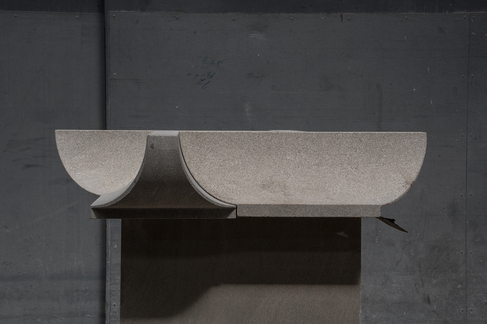 Rehinking Muller van Severens marble Bench we analyzed what struck us most about this Object. It is the way how this massive pieces of Stone are joined to in a way that it creates an object which one wouldn’t imagine in stone.